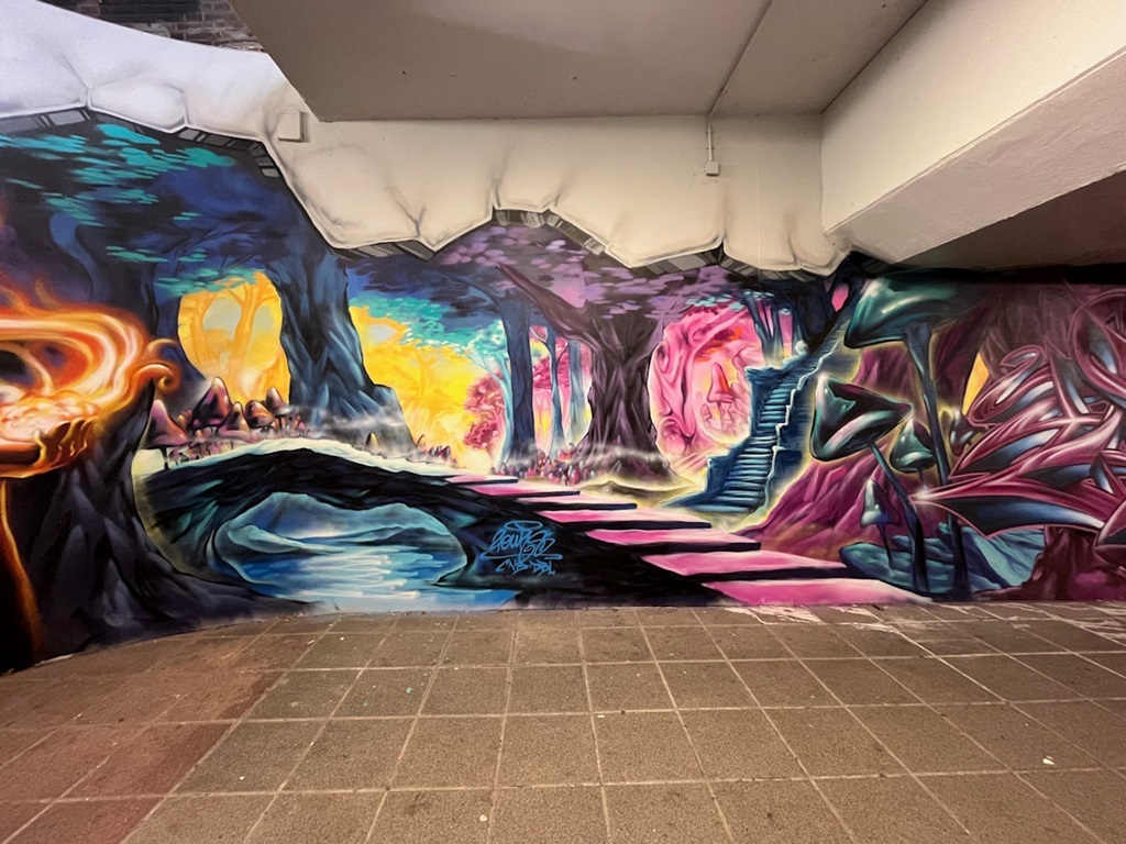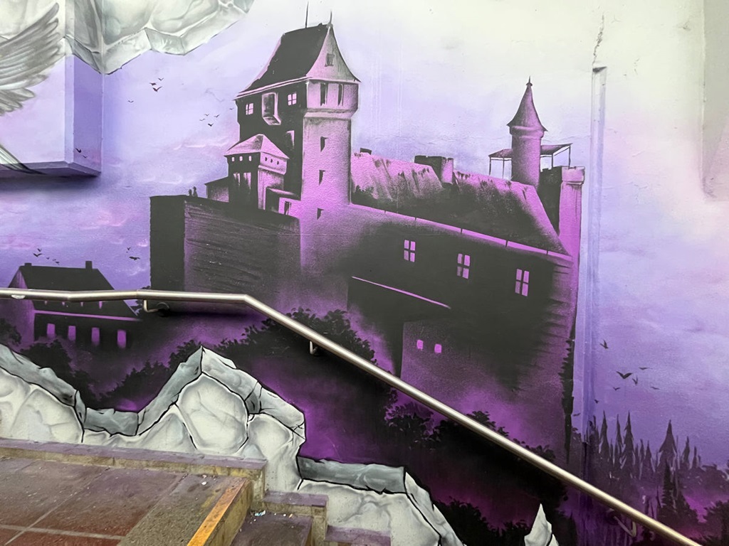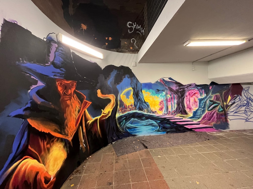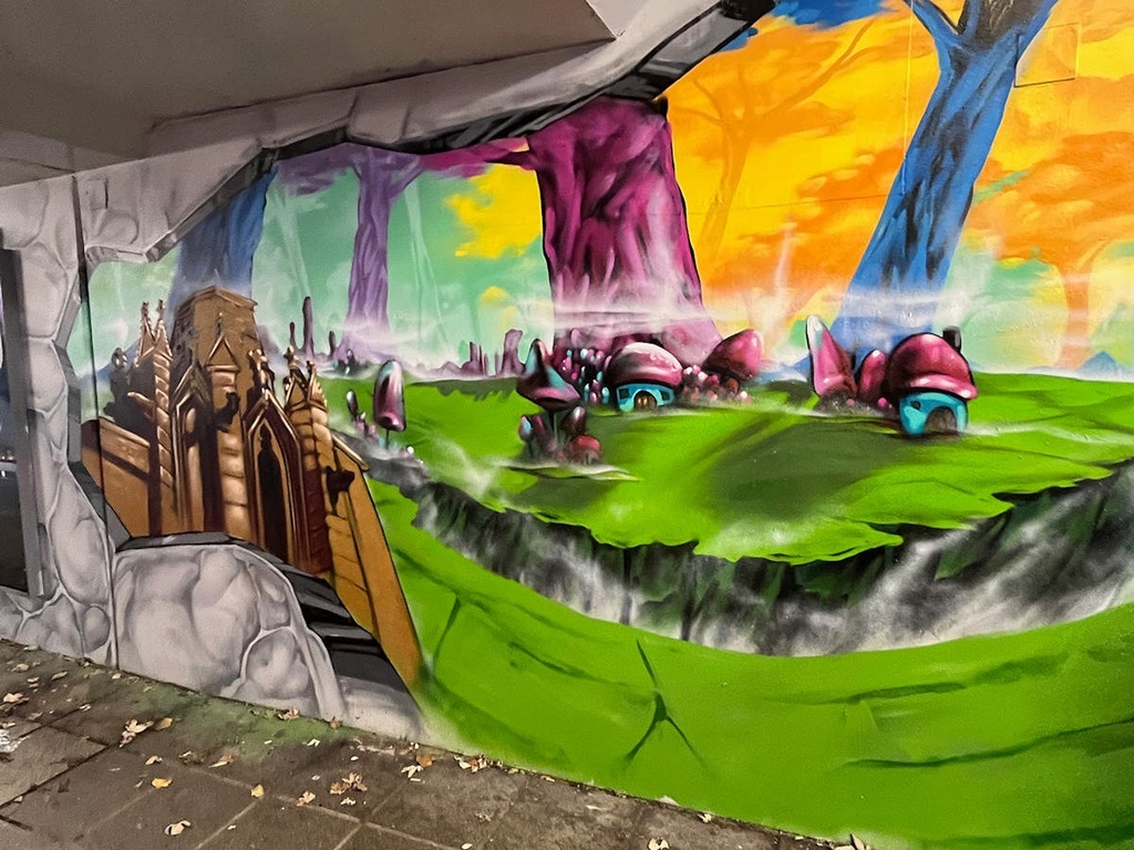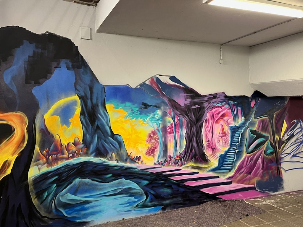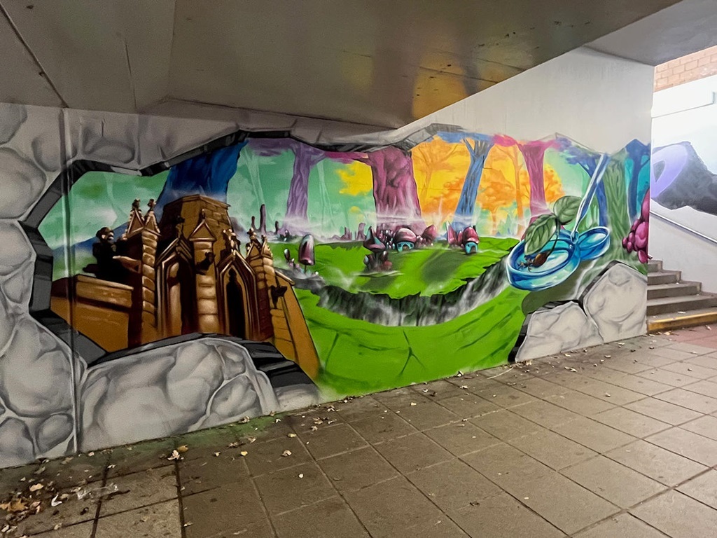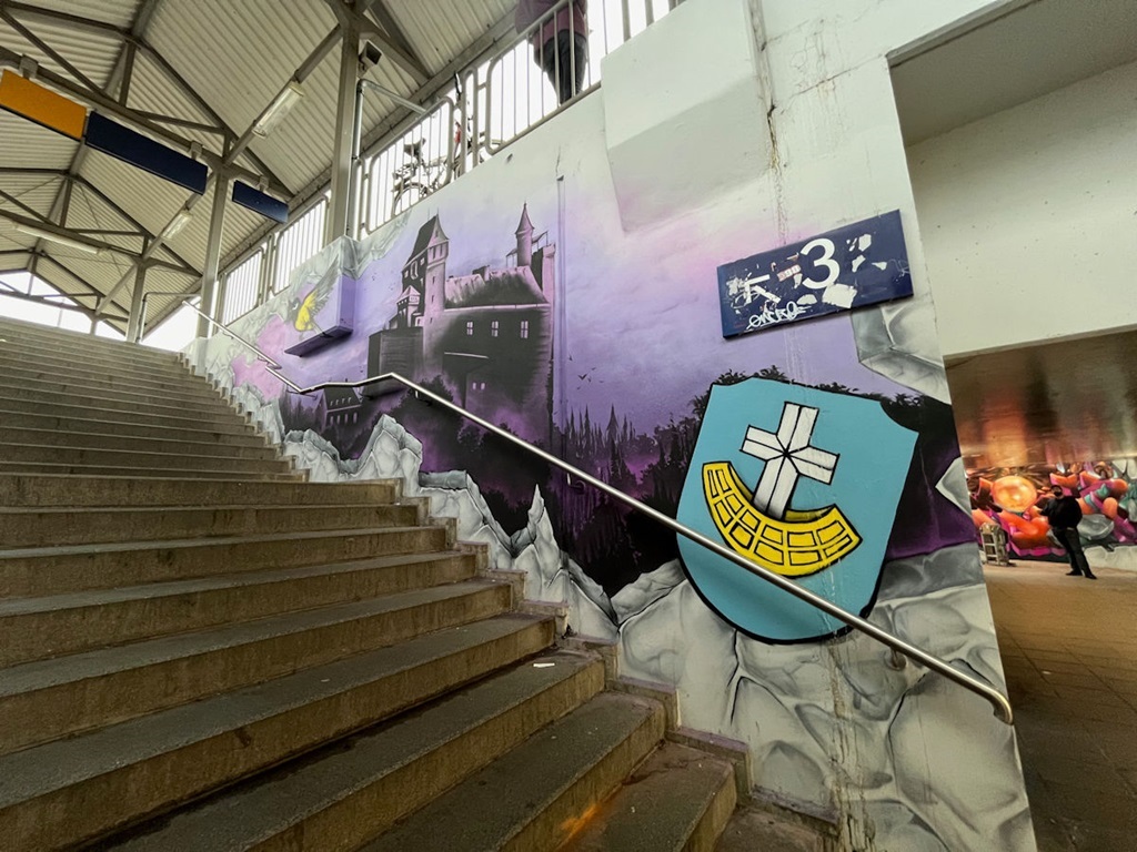 Limburgerhof wurde im wesentlichen von drei Buntic Media Künstlern gestaltet. Das Konzept bezieht sich inhaltlich auf den Pfälzerwald und die Märchen und Sagen, sowie dessen Schlösser.