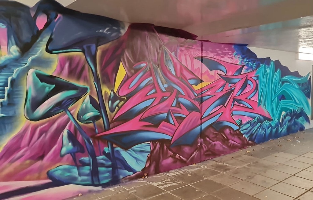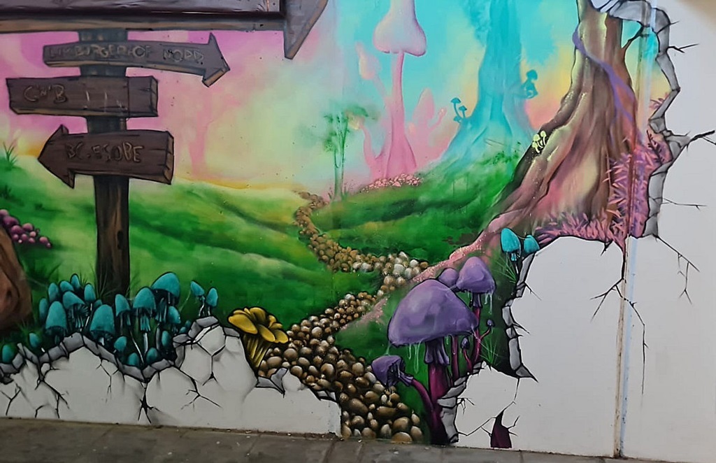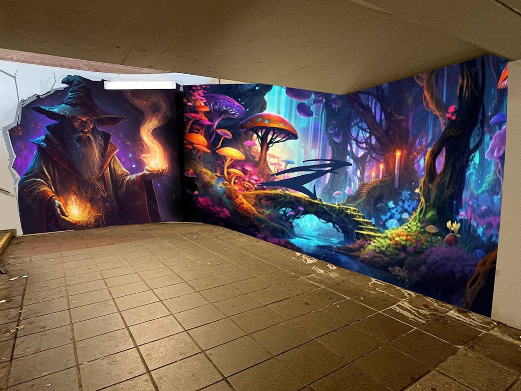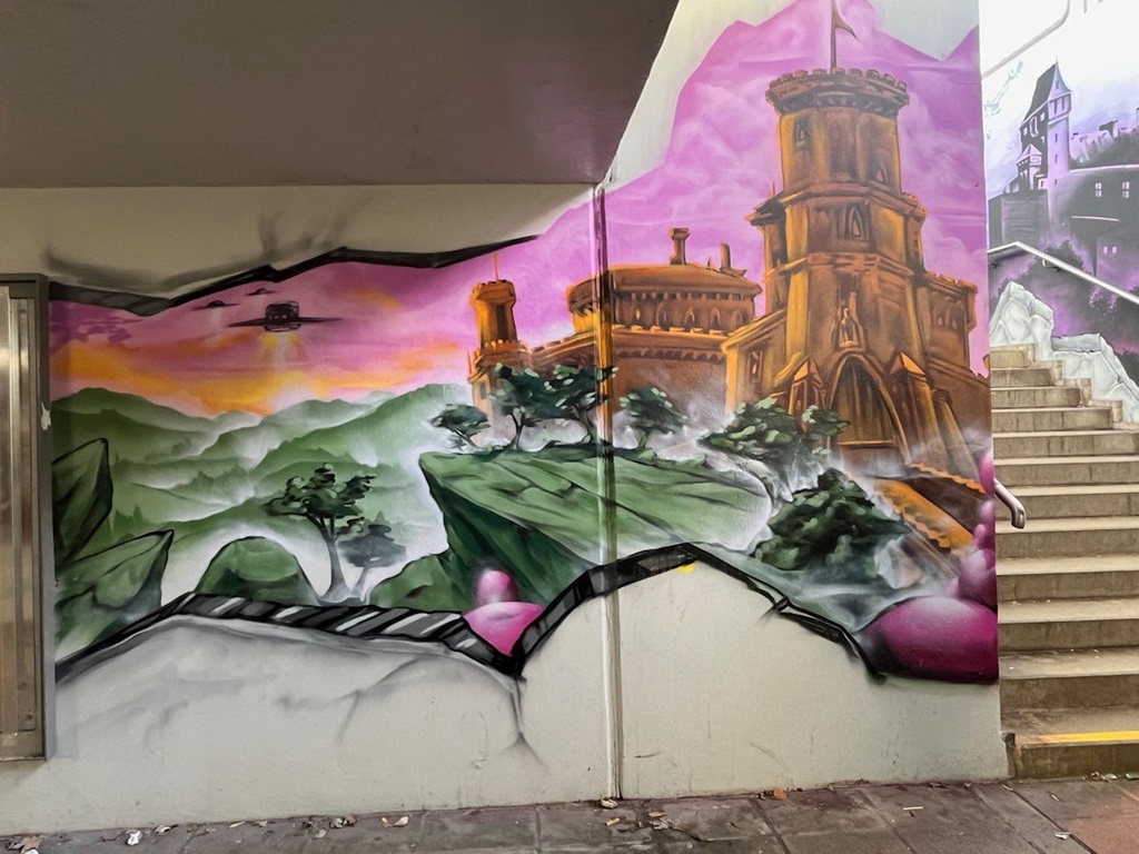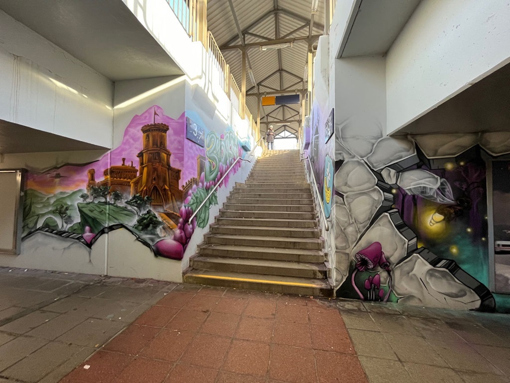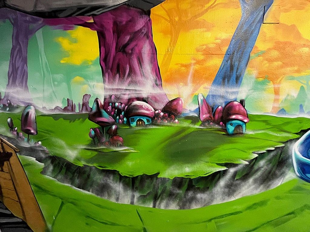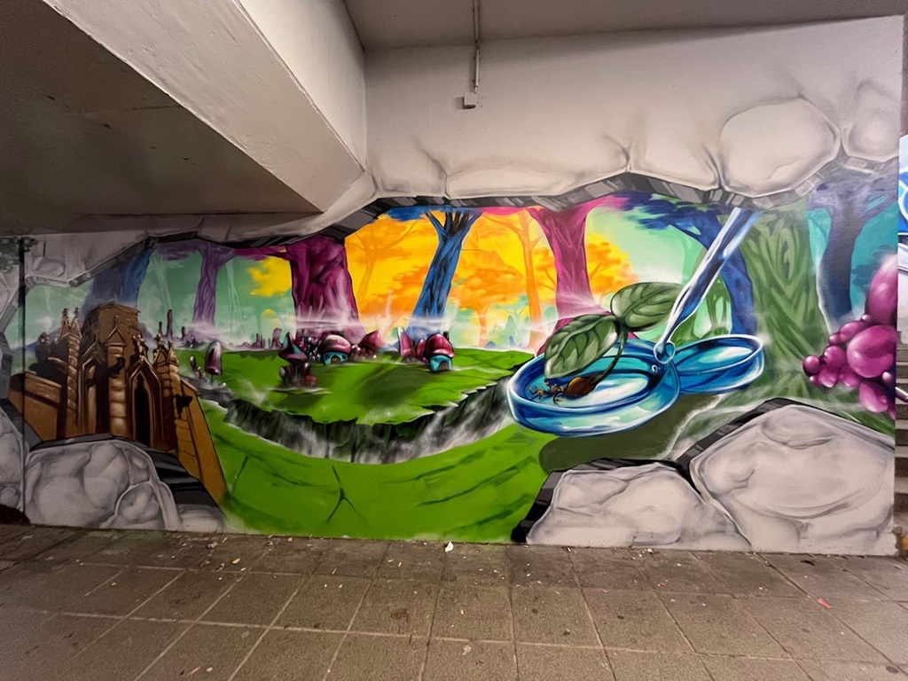 Limburgerhof wurde im wesentlichen von drei Buntic Media Künstlern gestaltet. Das Konzept bezieht sich inhaltlich auf den Pfälzerwald und die Märchen und Sagen, sowie dessen Schlösser.
