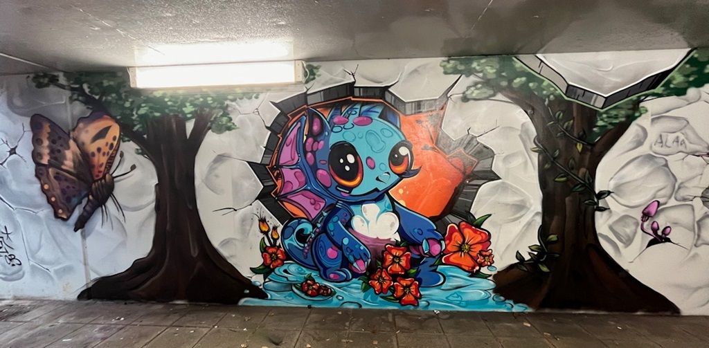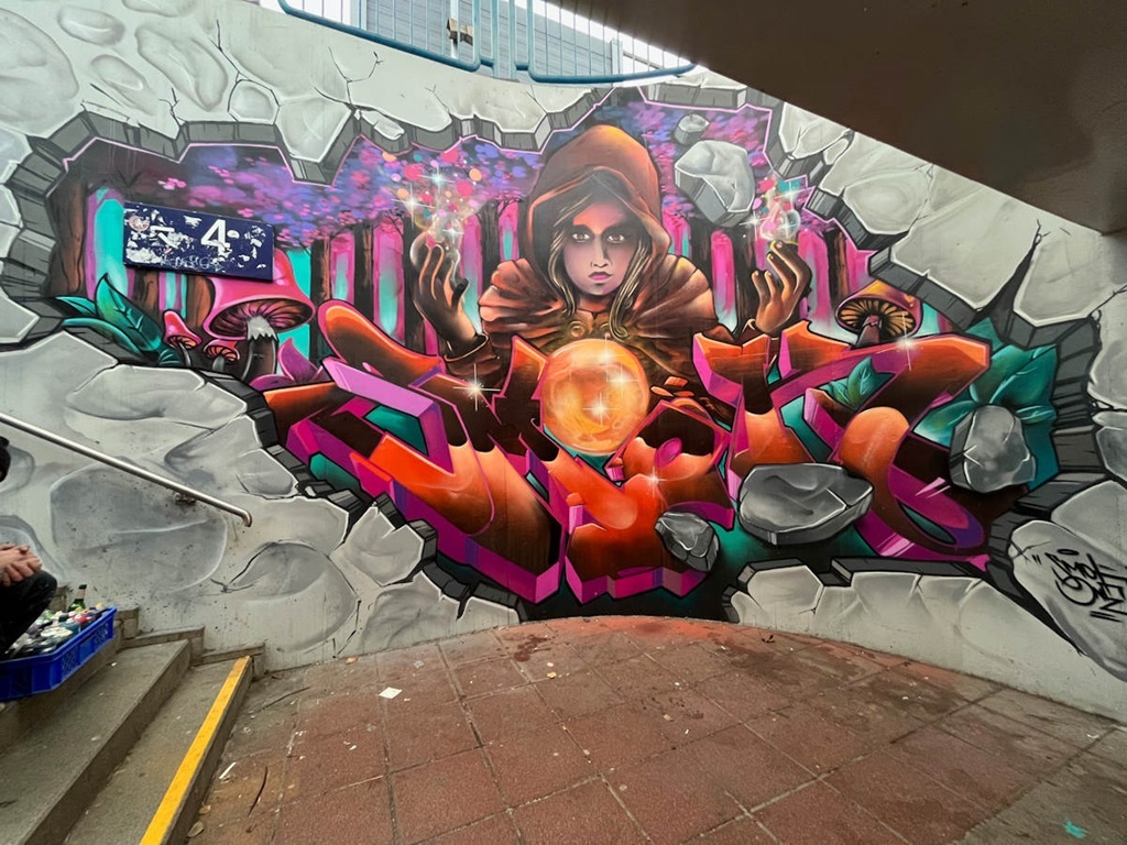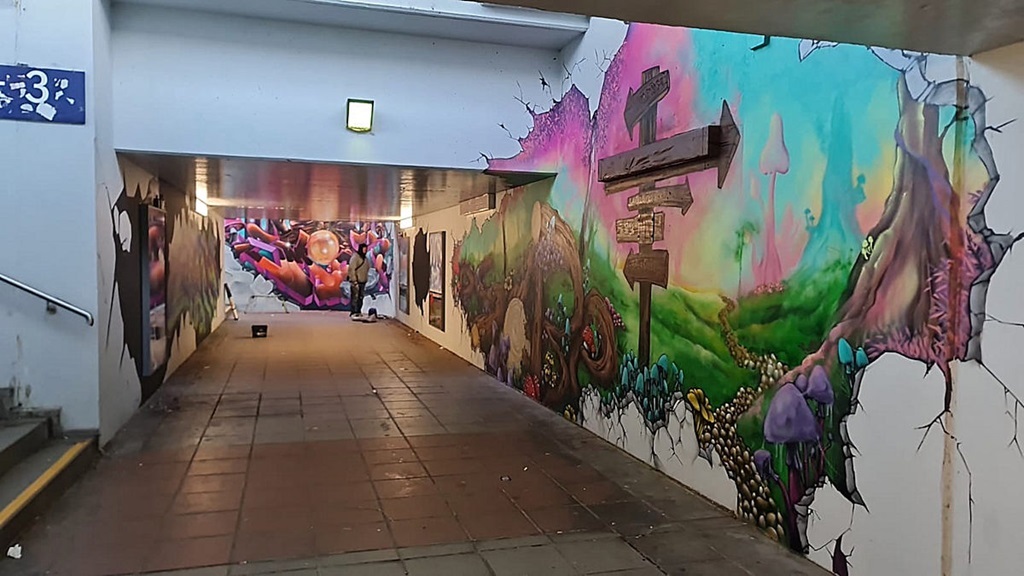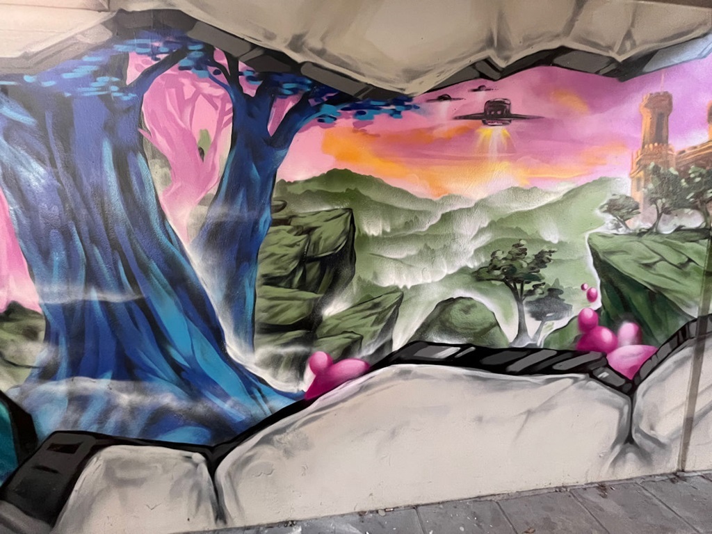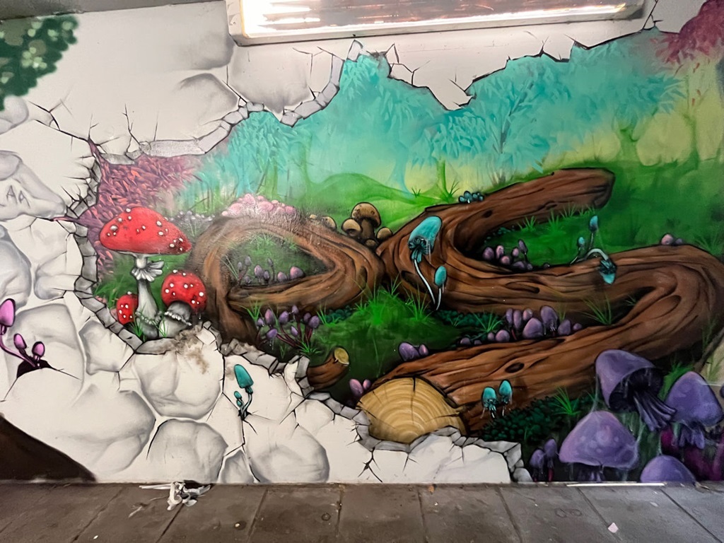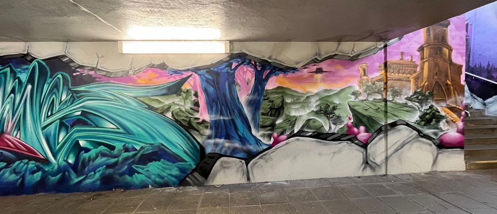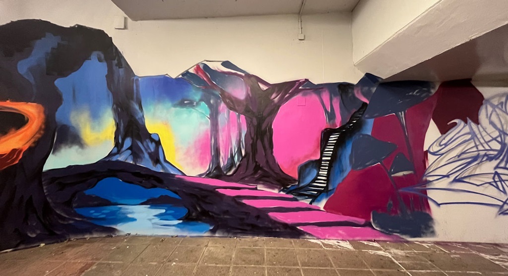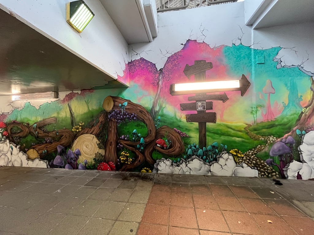 Limburgerhof wurde im wesentlichen von drei Buntic Media Künstlern gestaltet. Das Konzept bezieht sich inhaltlich auf den Pfälzerwald und die Märchen und Sagen, sowie dessen Schlösser.