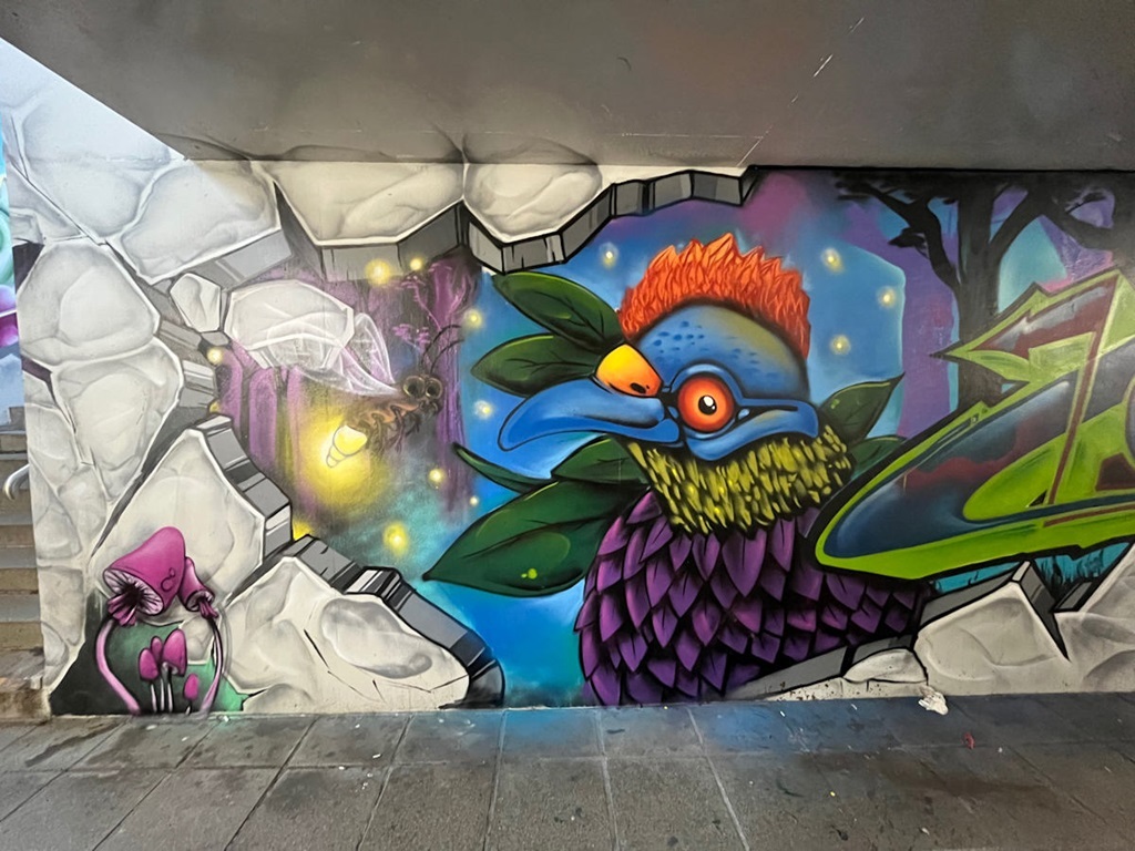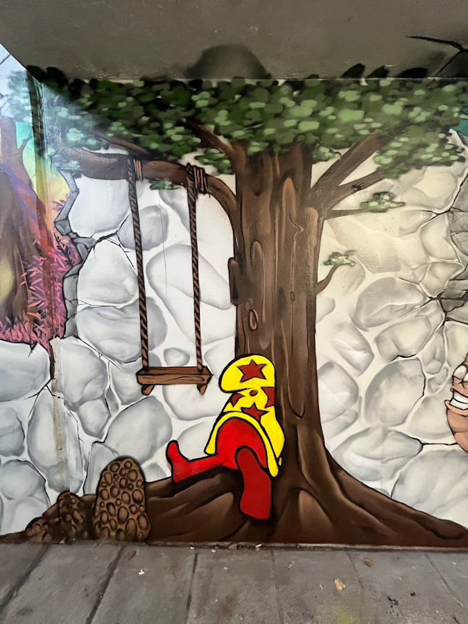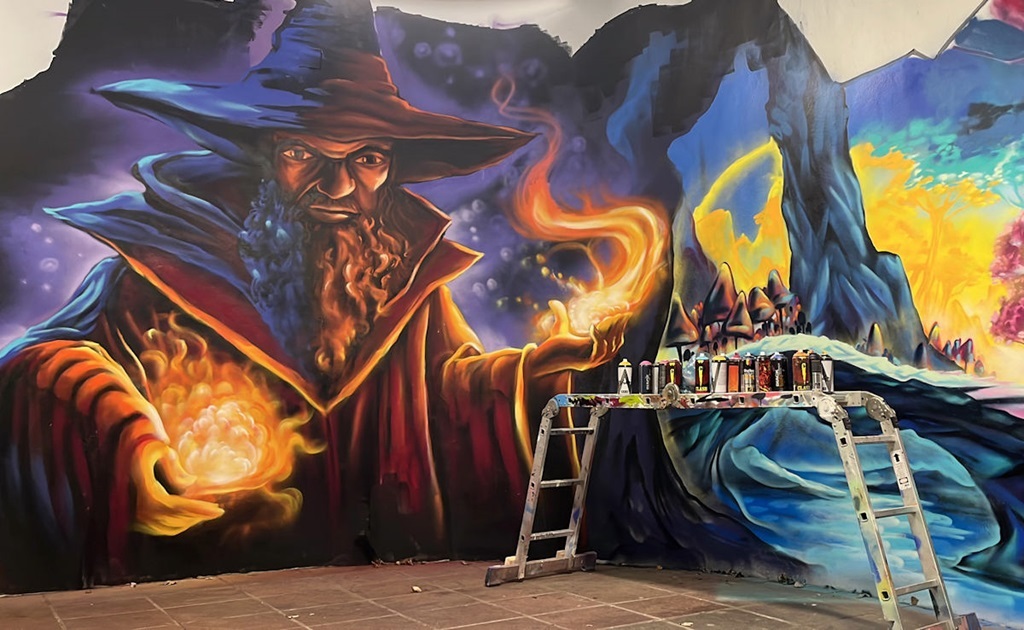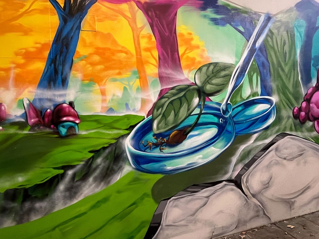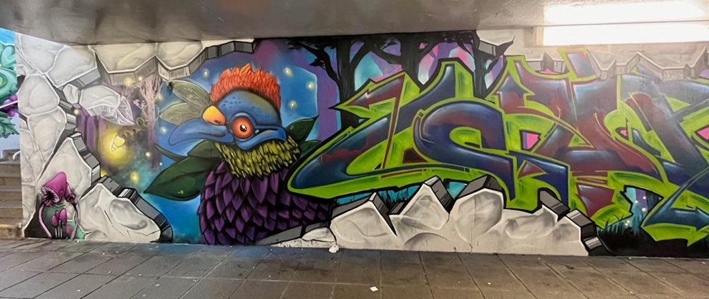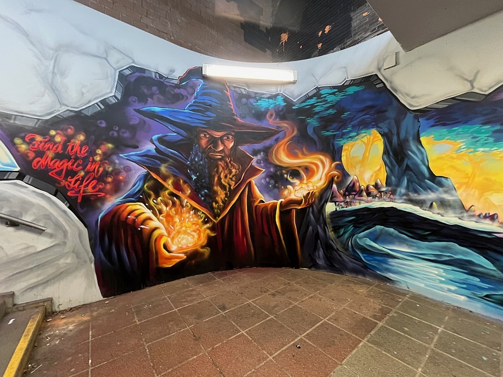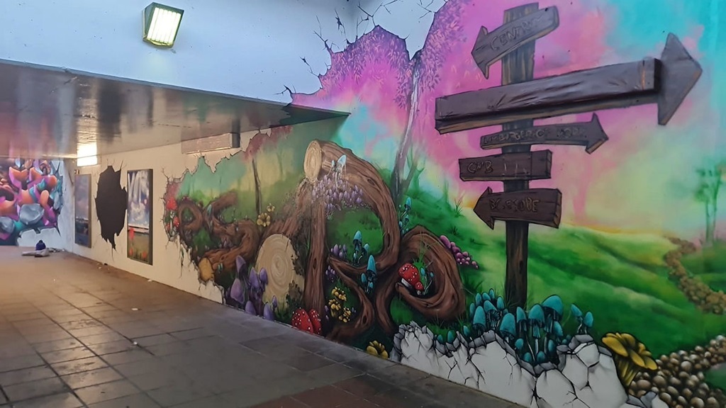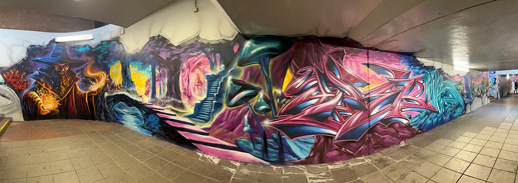 Limburgerhof wurde im wesentlichen von drei Buntic Media Künstlern gestaltet. Das Konzept bezieht sich inhaltlich auf den Pfälzerwald und die Märchen und Sagen, sowie dessen Schlösser.