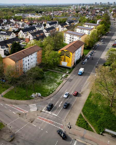 Ab dem 27. Mai: In der Ludwigshafener Gartenstadt, Hochfeldstrraße 135, entsteht fast zur gleichen Zeit wie das vorige Projekt ein buntes Fassadengemälde.