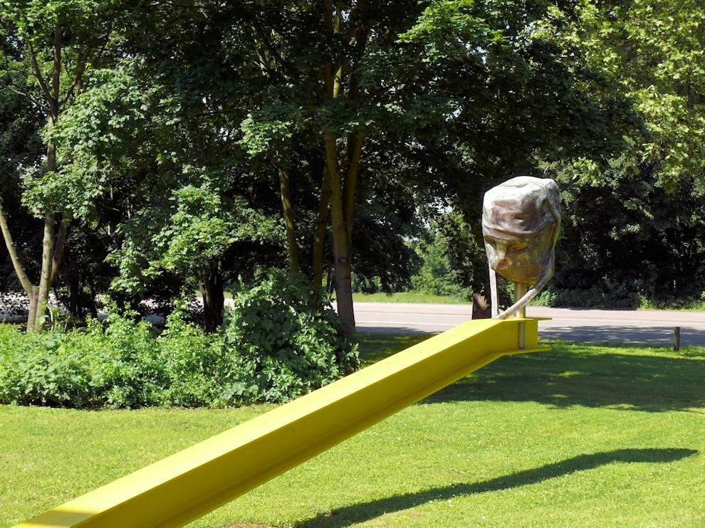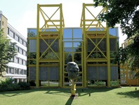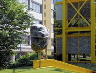 Spitzer hat hierbei einen gelben Stahlträger des Gebäudes einbezogen und somit dem Genre "Kunst am Bau" perfekt Rechnung getragen!