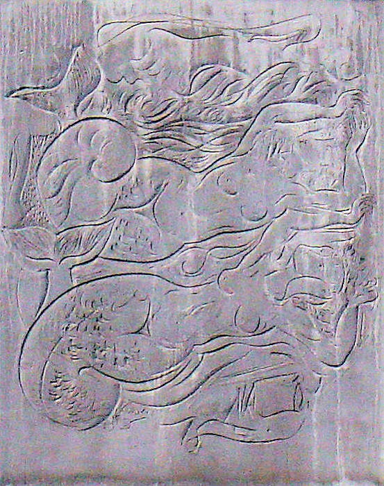 Die Gravuren beziehen sich auf „Väterchen Rhein“ und stellen verschiedene Nixen dar.